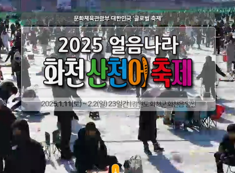 CNN이 선정한 '세계 겨울 7대 불가사의'! 대한민국 대표 겨울 축제, 화천 산천어축제가 2025년에도 돌아옵니다. 얼음낚시, 산천어 맨손잡기, 다채로운 프로그램이 여러분을 기다립니다.
